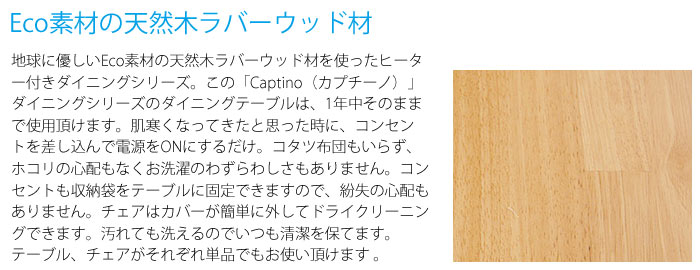 コタツ布団もいらず、ホコリの心配もなくお洗濯のわずらわしさもありません。